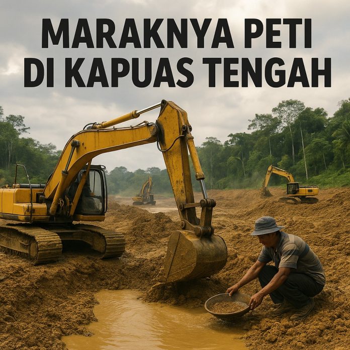 Hapakatnews.com – Aktivitas pertambangan tanpa izin (PETI) di Kecamatan Kapuas Tengah, Kabupaten Kapuas, Kalimantan Tengah, semakin marak dan kian meresahkan. Sejumlah excavator beroperasi terang-terangan untuk mengeruk emas, namun hingga kini aparat penegak hukum (APH) dinilai tidak berbuat banyak.